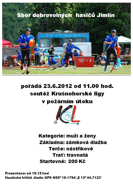 Sbor dobrovolných hasičů Jimlín Vás srdečně zve na 2. ročník soutěže v Jimlíně zařazeného do 16. ročníku Krušnohorské ligy.