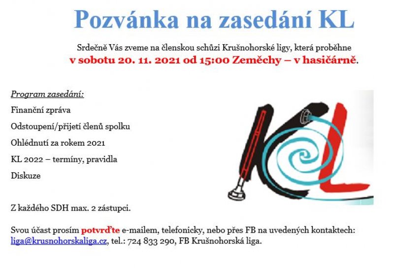 POZVÁNKA NA ZASEDÁNÍ KL 20.11.2021